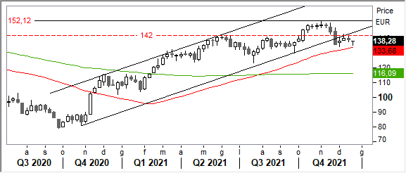 Analisi Tecnica. Il quadro grafico del settore bancario europeo è impostato al rialzo a partire dai minimi del marzo 2020, ma ha fornito un recente segnale di debolezza scivolando al di fuori del canale rialzista che ha guidato fin qui il movimento. Sarebbe opportuno il pronto e stabile recupero della soglia discriminante verso 142 punti.
