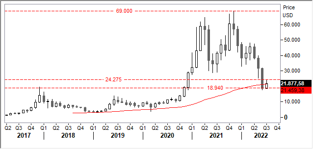 Analisi Tecnica. Graficamente, la tendenza di fondo rimane impostata al ribasso, ma il prezzo ha rotto la parte alta del canale che ha vincolato la tendenza di breve per circa un mese. La piena violazione di questo livello (22mila/22.500 usd) proietta obiettivi in direzione della resistenza successiva in area 28mila/28.800 usd.