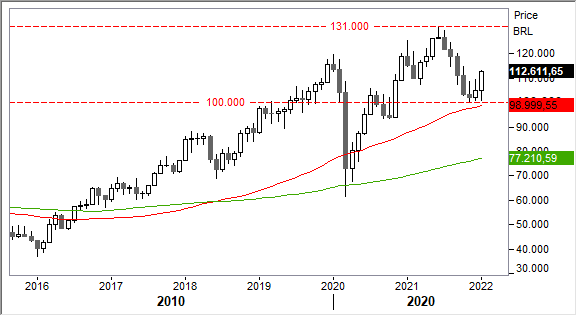 L'indice delle principali blue chip della Borsa di San Paolo ha ampliato la performance da inizio anno a un fantastico +12,50% (in euro), che si confronta con il -10,50% del Nasdaq, il -7,0% dell'indice MSCI World e il -3,30% dell'indice MSCI Emerging Markets.