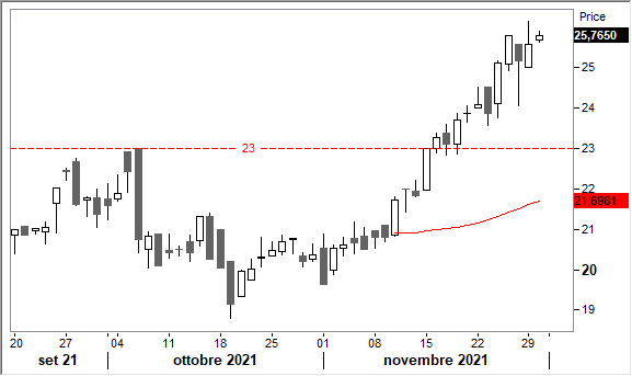 Nell'ultimo mese +25,50%.