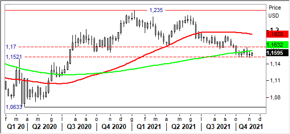 Il cross Euro/Dollaro (1,16) si allontana dai minimi da luglio 2020, segnati il 5 novembre a 1,1514 a seguito dei forti dati sull'occupazione negli Stati Uniti.
