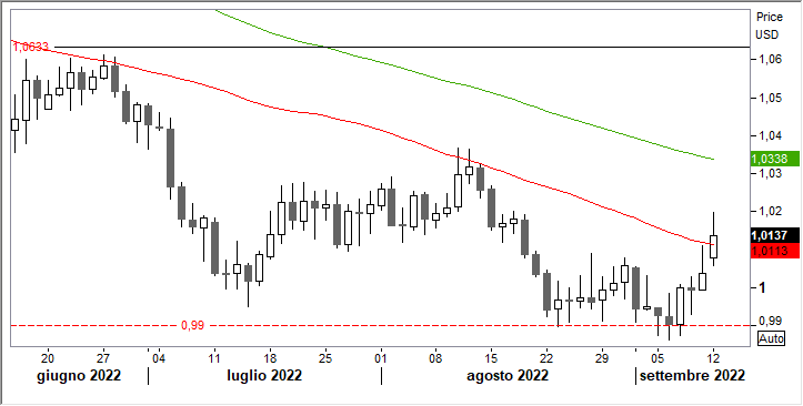 Sull'altra sponda dell'oceano, Il dato sull’inflazione USA di martedì è l’ultimo di rilievo prima della riunione Fed del 21 settembre. L’atteso rallentamento all’8,1%, da 8,5% di agosto, non dovrebbe incidere più di tanto sulla decisione dei banchieri centrali degli Stati Uniti di alzare di ulteriori 75 pb i tassi.
