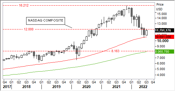 Il NASDAQ Composite ha ridimensionato la perdita dal primo gennaio ad oggi al -24,50%.