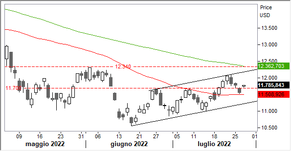 Sarebbe importante riuscire a superare stabilmente anche la prima forte resistenza a 12mila/12.340 punti. C'è stato un tentativo la scorsa settimana, 21 e 22 luglio, ma il movimento è rientrato repentinamente.