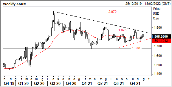 Il quadro grafico di lungo periodo si conferma ancora cedente, mentre la tendenza di breve ha espresso qualche segnale di risveglio con il superamento di area 1.800 usd.