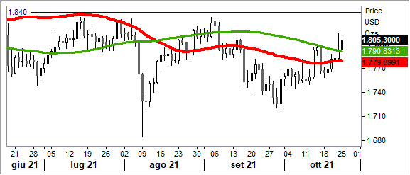 ORO +0,7% La quotazione supera di nuovo i 1.800 usd l'oncia