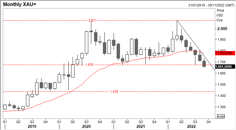 In avvio di seduta ha toccato nuovi minimi degli ultimi due anni a 1.654 usd, -3% il bilancio settimanale, peggior risultato degli ultimi due mesi.
