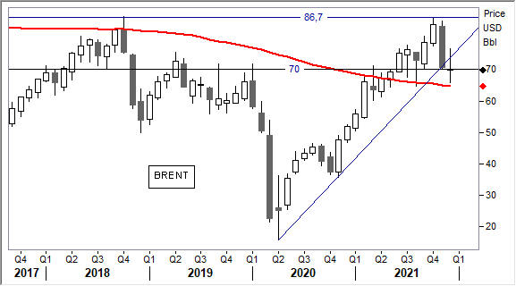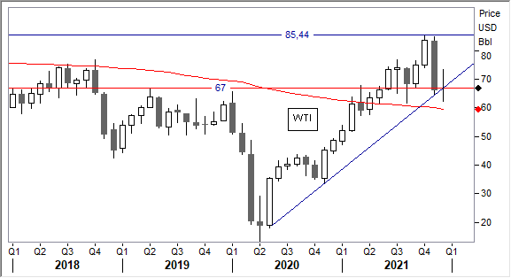Operatività. Approfittiamo dello scenario debole per ricomprare almeno in parte quanto venduto nell'area dei top annuali. Visto il quadro incerto causato dalla variante omicron preferiamo posizionare gli acquisti verso i supporti rispettivamente a 70 e 67 usd. Oggi scattano quindi gli acquisti sulla debolezza. Cambio di scenario e stop loss prudenziale sotto 64 usd.