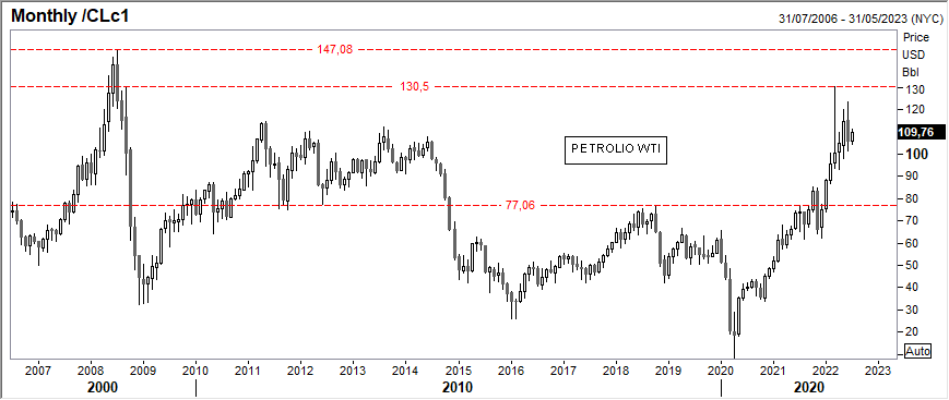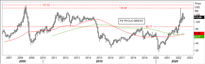 Brent (113,10 usd) e WTI (109,80 usd) si muovono in lieve rialzo dal +2% di ieri.