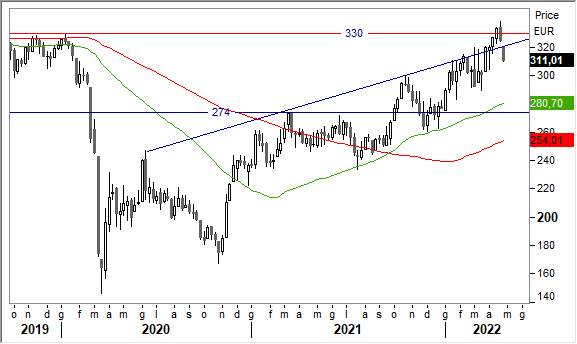 L'indice Stoxx Oil & Gas (oggi 311 punti) ha avviato una brusca correzione una volta avvicinata (e per una paio di sedute anche violata) la soglia discriminante in area 330 punti, massimo pre-pandemia del 2019/2020. Il ritorno al di sotto di tale soglia potrebbe favorire le prese di profitto fino al primo supporto degno di nota in area 300 punti. La tendenza di fondo rimane saldamente rialzista.