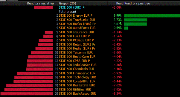Nel frattempo l'indice Stoxx globale ha perso il 3%, sotto il peso delle vendite che hanno penalizzato Utility, Tech e Real Estate.
