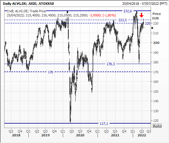 Newsflow. Da qualche anno Allianz ha perso la capacità di sovraperformare sia il comparto assicurativo europeo sia il mercato (Eurostoxx50).