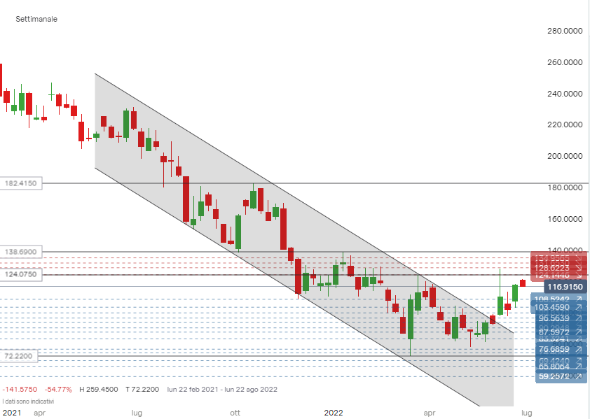 Target: prese di profitto nella fascia 135/140 usd (120/124 usd per trading più veloce).