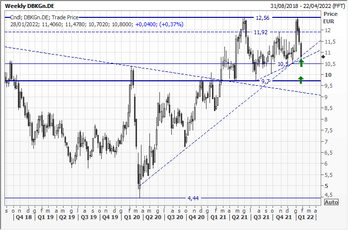 Scenario grafico di breve-medio periodo. D. Bank, ora a 10,8 euro, +0,3%, sta consolidando da qualche mese il recupero partito dai minimi di inizio pandemia a 4,44 euro. Crediamo sia una situazione temporanea prima di riprendere a spingere. Nel frattempo operiamo all'interno della banda 9,7/10,5 - 11,92/12,5 euro, comprando sulle debolezze.