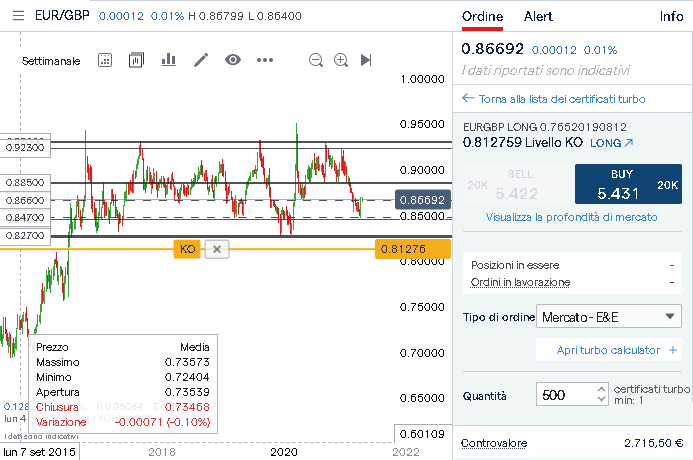 TRADING Turbo24 - LONG SU EUR/GBP con Knock Out a 0,812759 punti