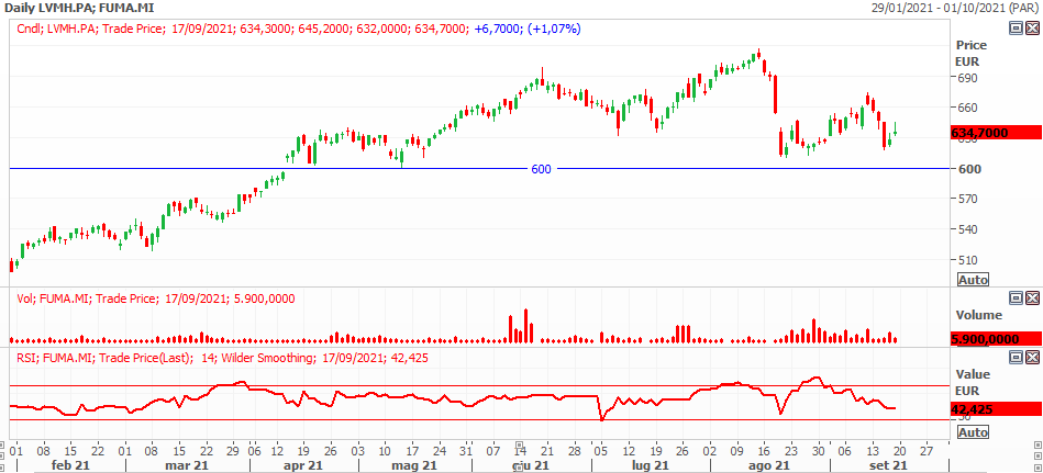 Newsflow. Prove di rimbalzo per LVMH dopo il crollo delle ultime sedute. Il quadro rimane ancora però debole per il settore. Da uno dei mercati di sbocco principali per le società del settore, quello asiatico, in primis la Cina, il news flow infatti non è per niente positivo. Le chiusure per contrastare i focolai pandemici stanno avendo impatto anche a livello macroeconomico. A tutto ciò si aggiungono anche le tensioni geopolitiche legate al lancio di nuovi missili da parte della Corea del Nord.