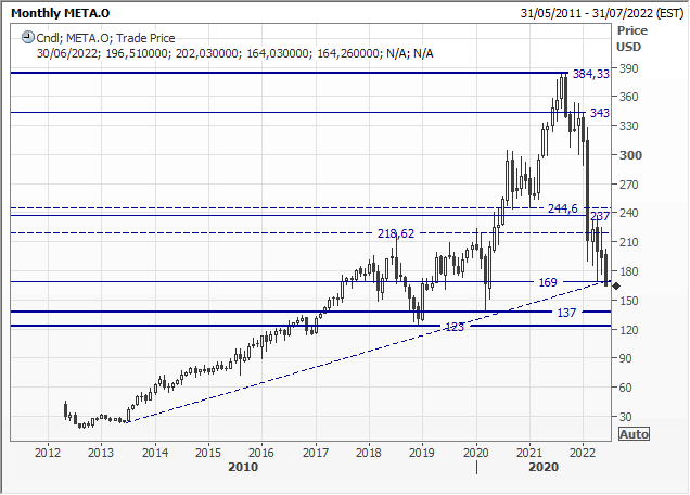Operatività multiday: a questi prezzi ed in caso di improbabili rimbalzi verso 200/220 usd, suggeriamo ancora operazioni SHORT su META PLATFORMS con Knock Out a 227,2425 usd, fattore di leva 3X, con il certificato disponibile sulla piattaforma IG.