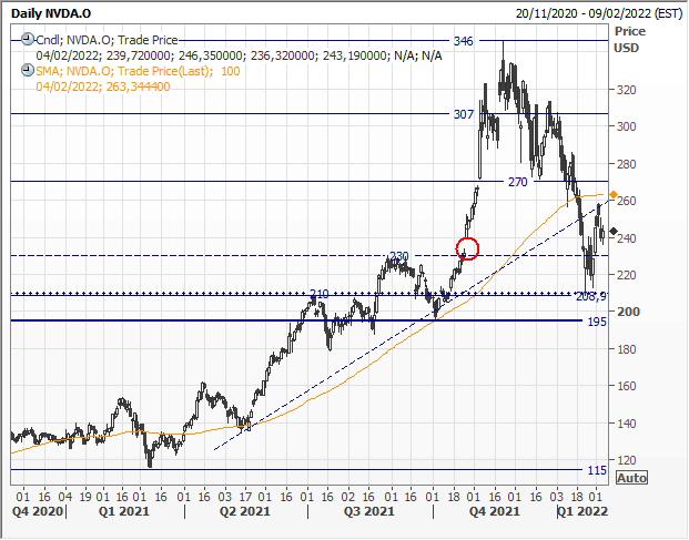 Operatività multiday: a questi prezzi, e in caso di improbabili decisi rimbalzi verso 270/300 usd, suggeriamo operazioni SHORT su NVIDIA con Knock Out a 312,4065 usd, fattore di leva 4X, con il certificato disponibile sulla piattaforma IG.
