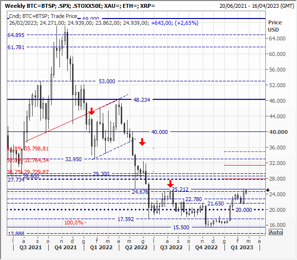 Newsflow. Il Bitcoin passa di mano a poca distanza dal picco record degli ultimi sette mesi segnato la scorsa settimana a 25.248 usd. Venerdì l’exchange italiano The Rock Trading, fondato da Andrea Medri e Davide Barbieri, ha annunciato la decisione di sospendere i prelievi per problemi di liquidità. L’ufficialità è arrivata, tramite un comunicato, dopo che nelle ultime settimane i clienti avevano lamentato difficoltà e ritardi nei prelievi. Il comunicato pubblicato sul sito così recita: "The Rock Trading comunica che si è reso necessario interrompere l’operatività della propria piattaforma a partire dalla data odierna (17 febbraio 2023, ndr), in ragione di difficoltà riscontrate nella gestione della liquidità. La società sta conducendo verifiche interne per individuare le cause del problema e valutando l’adozione di tutte le iniziative opportune o necessarie per tutelare la clientela e gli altri stakeholders. Ulteriori comunicazioni di aggiornamento sulle misure intraprese saranno fornite in tempi rapidi". I clienti temono che i problemi siano ben più gravi, soprattutto perchè che The Rock Trading ha di recente perso la sua banca d’appoggio italiana (Banca Sella), per affidarsi a un istituto irlandese. Il numero dei clienti italiani coinvolti non è noto e non si conosce l’ammontare delle criptovalute che sono state lasciate in piattaforma alla mercé dell’Exchanger (le crypto che rimangono in piattaforma sono di proprietà dell’Exchanger).