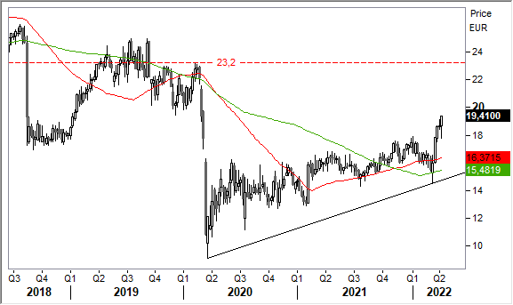 Operatività multiday. Per l'analisi Tecnica di Websim la prima chiusura sopra 20 euro farà scattare una nuova strategia LONG sulla forza. Maggiori dettagli operativi nella scheda di analisi tecnica.