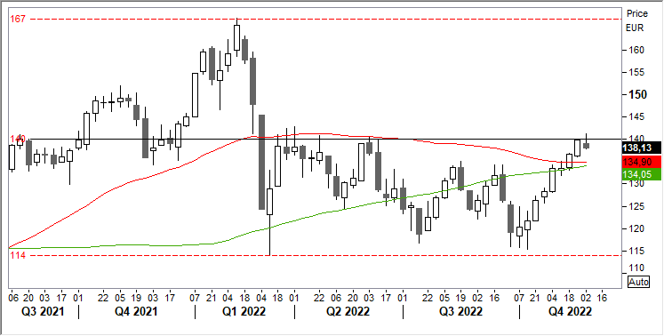 Operatività. Si suggerisce di sfruttare sistematicamente l'eventuale discesa in area 120/114 punti per comprare sulla debolezza. Pronti a incrementare la posizione in tendenza sulla rottura di 146 punti. Primo obiettivo a 167 punti. Stop loss prudenziale sotto 110 punti per riposizionarsi con gli acquisti in area 100 punti.