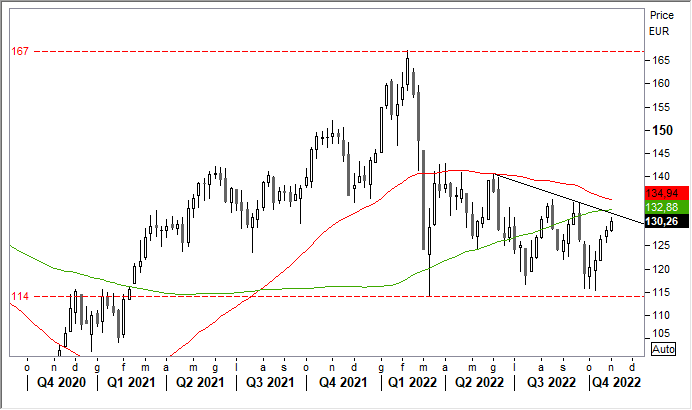 Operatività. Si suggerisce di sfruttare sistematicamente la discesa in area 120/114 punti per comprare sulla debolezza. Incrementare sulla rottura di 140 punti. Obiettivo a 167 punti. Stop loss prudenziale sotto 110 punti per riposizionarsi con gli acquisti in area 100 punti.