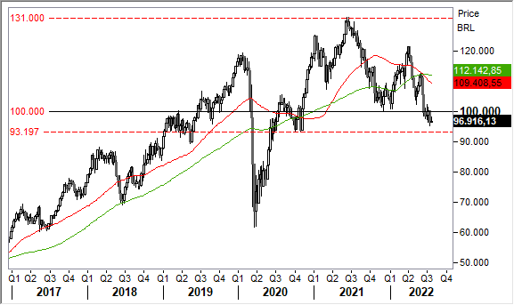 Analisi Tecnica. L'indice Bovespa ha segnato i massimi storici a giugno 2021 in area 131mila punti. Il ritracciamento successivo, tuttora in corso, ha portato settimana scorsa il valore sui minimi da ottobre 2020.