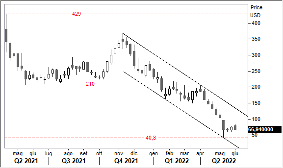 Da inizio anno il titolo perde il -67% per una capitalizzazione che si è via via ridotta intorno ai 14,80 miliardi.