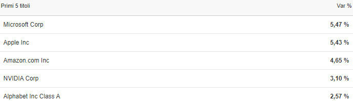Punta a replicare l'indice S&P500 Paris Aligned Climate la cui composizione vede ai primi cinque posti le seguenti azioni. Non distribuisce dividendi. Valuta di denominazione USD. Leggi il documento KID.