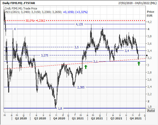 Più nel breve, le resistenze in zona 4 euro hanno finora respinto i tentativi di maggiori allunghi e rimangono lo spartiacque da superare per ambire a un ritorno sui top pre-pandemia. Nel frattempo, area 3,40/3,0 euro si propone come solido supporto e zona d'acquisto.