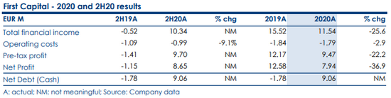 Il risultato netto consolidato si attesta a 7,94 milioni, grazie all’incremento di valore del portafoglio e alle plusvalenze realizzate (12,58 milioni nel 2019)