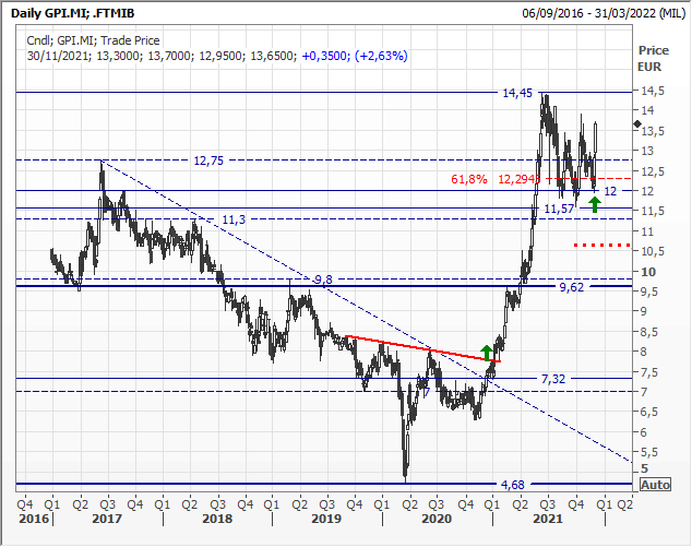 Graficamente, c'è stata prima una fase decrescente dai massimi assoluti a 12,75 euro, segnati poco dopo l'Ipo, fino ai minimi a 4,68 euro toccati in piena pandemia. Da lì, il trend si è invertito ed i prezzi hanno inanellato una serie di top assoluti, l'ultimo dei quali a 14,45 euro toccati a giugno. Da allora sta prevalendo una fase di consolidamento con base intorno a 12/11,5 euro, zona d'acquisto. Questa dovrebbe preparare il terreno per la ripresa dell'uptrend con buone potenzialità di vedere nuovi record.