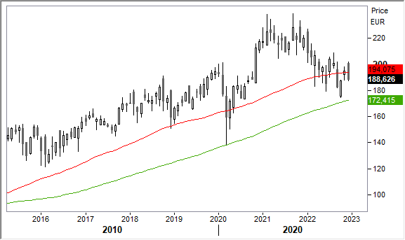 L'impostazione di lungo periodo è saldamente rialzista, con il picco record segnato nel febbraio 2021 intorno a 30.700 punti e rivisto nel settembre 2021. Fortissimo supporto statico in area 24.300 punti.
