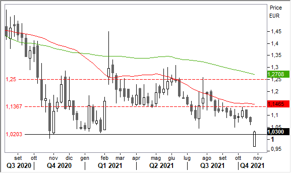 Vediamo obiettivi al ribasso anche nell'area di 0,50 euro in caso di chiusura sotto 1,0 euro.