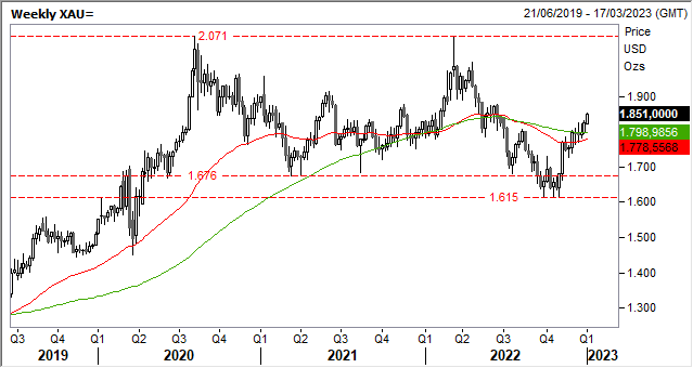 Analisi tecnica. La violazione del primo importante scoglio grafico, 1.770/1.800 usd, dove transitano le medie mobili di lungo periodo sotto indicate, ha rappresentato un importante segnale di spinta in grado di proiettare la quotazione sui massimi storici in area 2.070 usd.