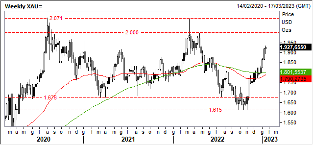 Analisi tecnica. La violazione del primo importante scoglio grafico, area 1.800 usd, dove transitano le medie mobili di lungo periodo sotto indicate, ha rappresentato un importante segnale di spinta in grado di proiettare la quotazione sui massimi storici in area 2.070 usd.