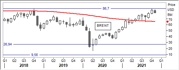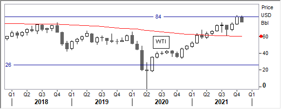 Analisi Tecnica. Il quadro di fondo rimane saldamente rialzista, con i prezzi che continuano a gravitare nell'area dei massimi dell'anno. Tuttavia, i rischi di ulteriori correzioni ci paiono più che realistici nel breve alla luce di: rilascio scorte strategiche Usa/altri, accordo sul nucleare con l'Iran, accelerazione della quarta ondata di covid in Europa. Soglie di allerta verso 80 e 78 usd già sotto pressione.